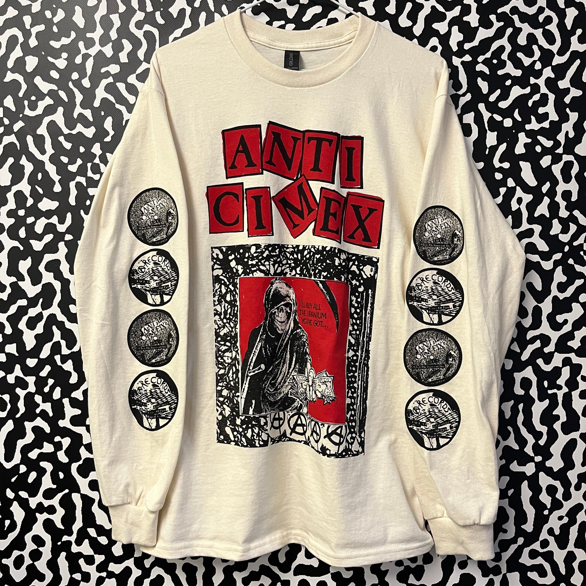 Screen printed as shown on Gildan 5400 longsleeve with waterbased ink.