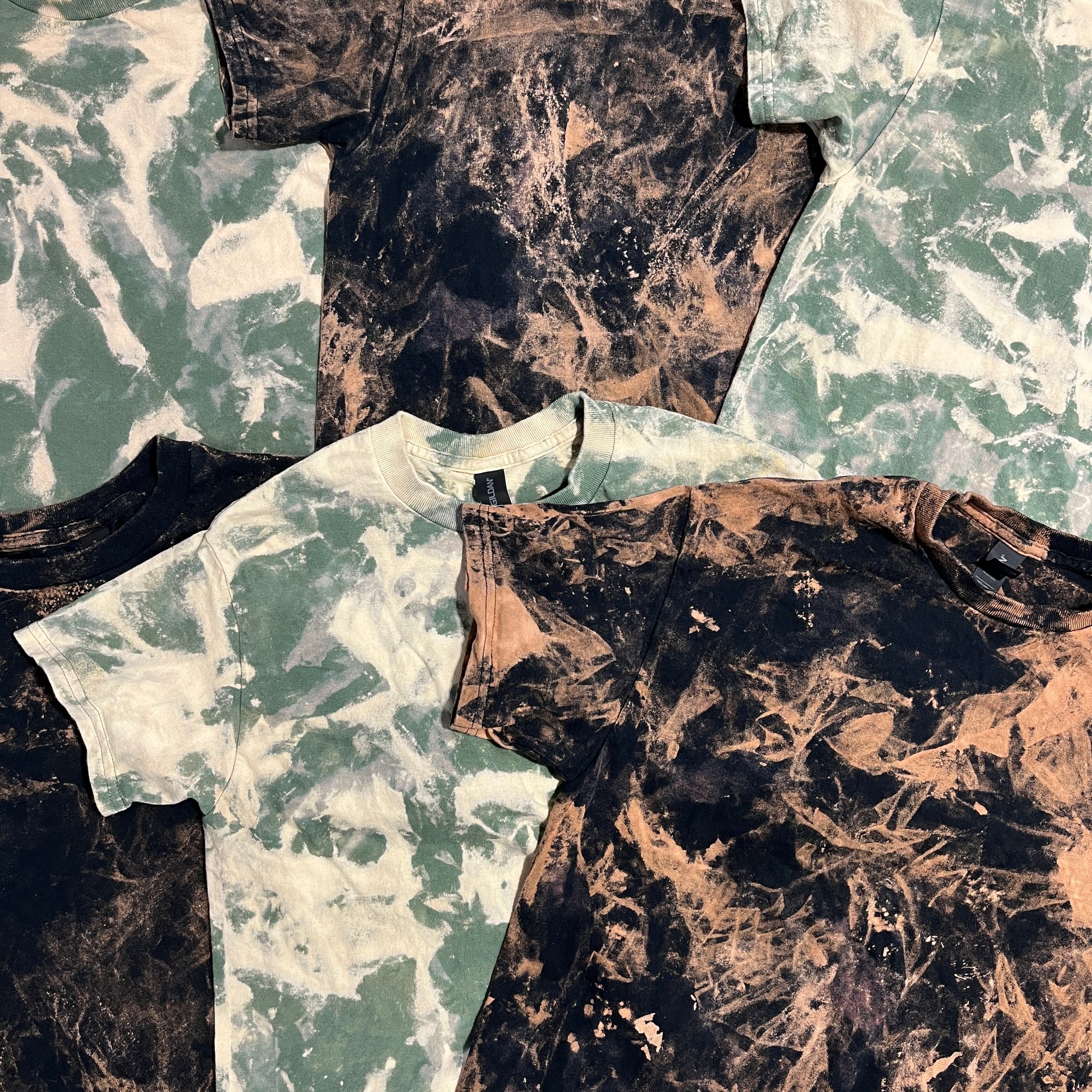 Black or Army Gildan 5000 bleach dye tees, pick what you want on it and leave an order note at checkout (under order summary)