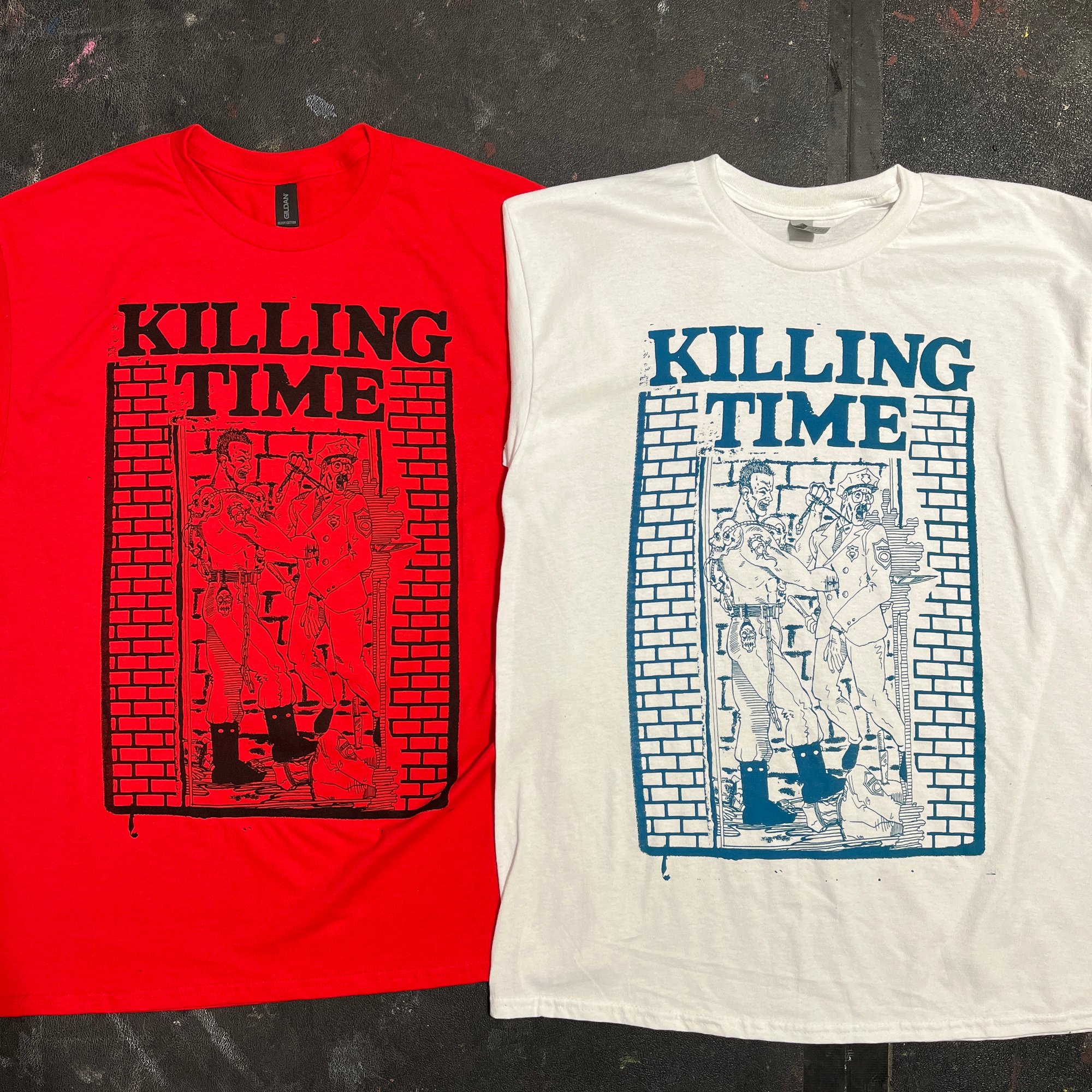 Made to order with waterbased inks on Gildan 5000 cotton.