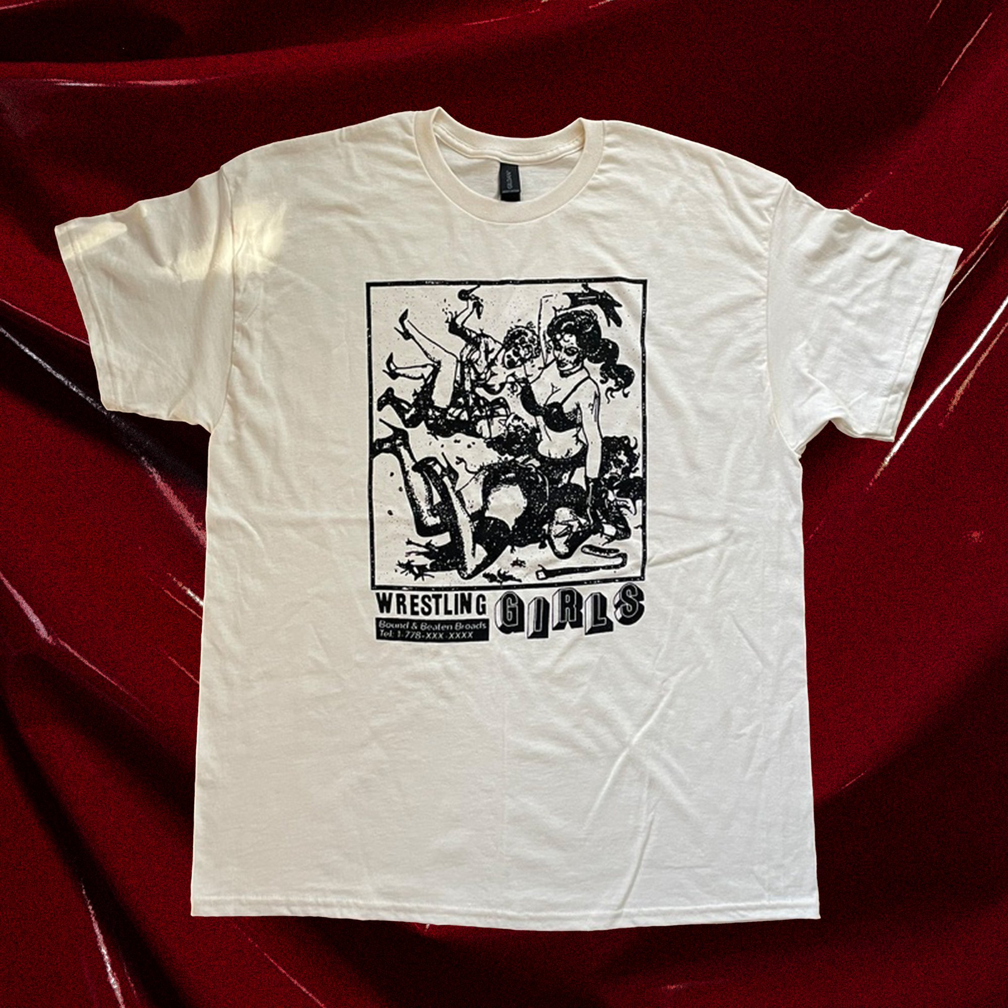 Made to order with waterbased inks on Gildan 5000 cotton.