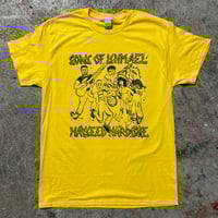 Made to order with waterbased inks on Gildan 5000 cotton.