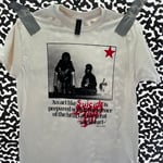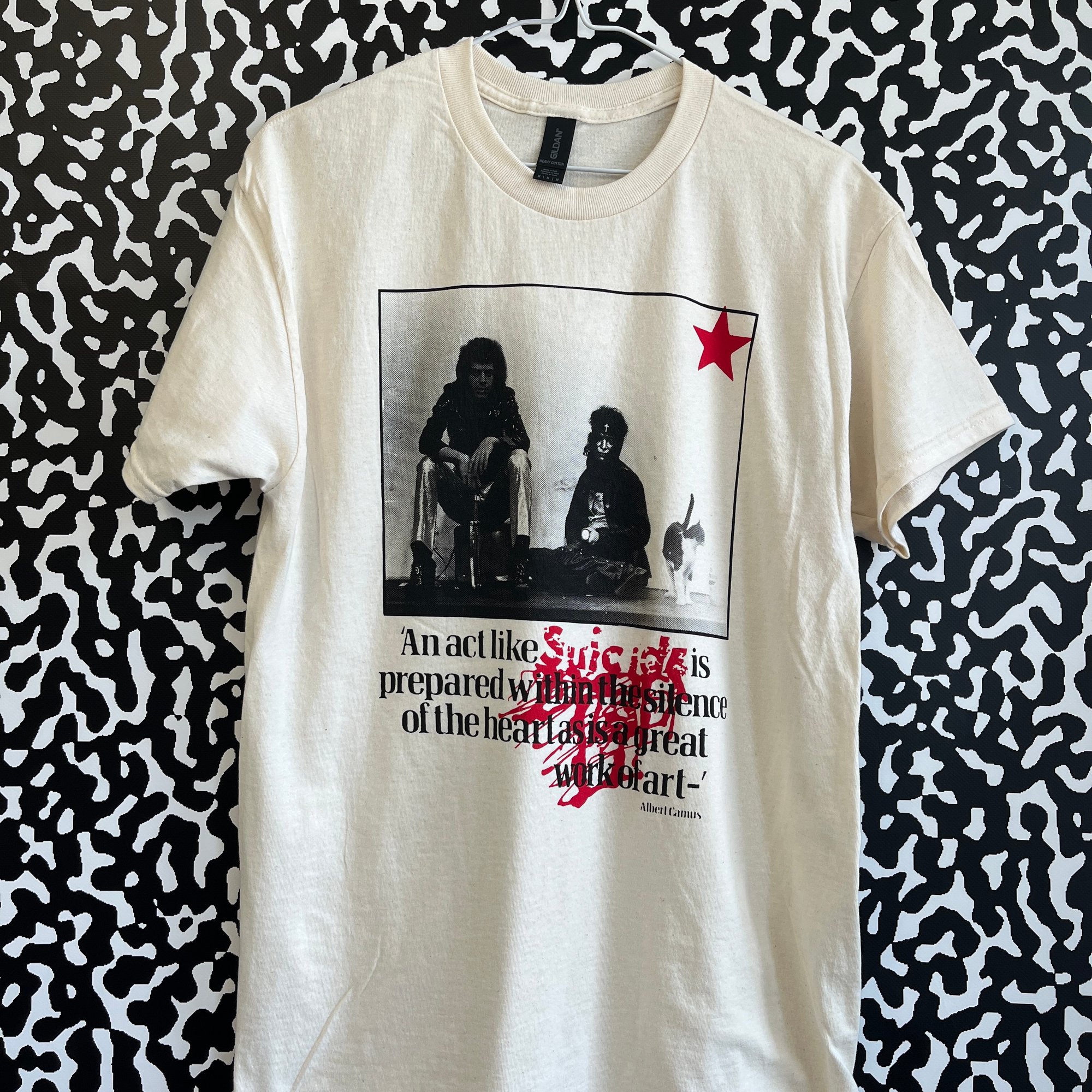 Made to order with waterbased inks on Gildan 5000 cotton.